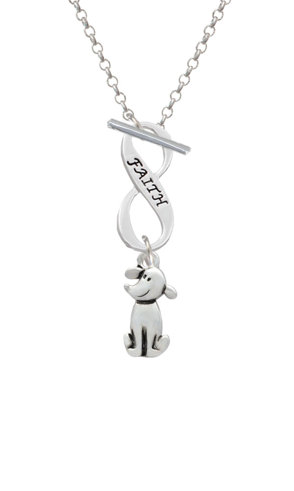 Silver Tone 2-D Dog Faith Infinity Toggle Necklace. Silver Tone Charms. Charm size is approx. 0.72 x 0.38 x 0.11 inches (HxWxD) including loop. 3mm Rolo Chain Necklace is 18 inches long. Infinity Toggle is approx. 0.90 x 0.40 x 0.10 inches (HxWxD). The infinity symbol represents the quality of being limitless or endless. Choose your favorite message to represent your love, faith, or commitment that lasts forever. Please Note: Our products are lead safe, but are not intended for children 14 years and younger.