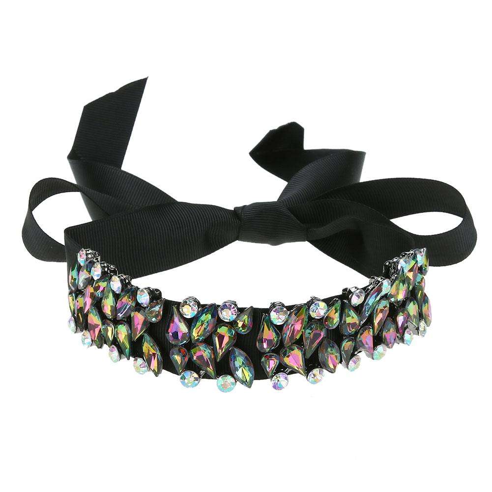 Colorful Diamond Short Necklace Ribbon Rhinestone Choker Neck Chain