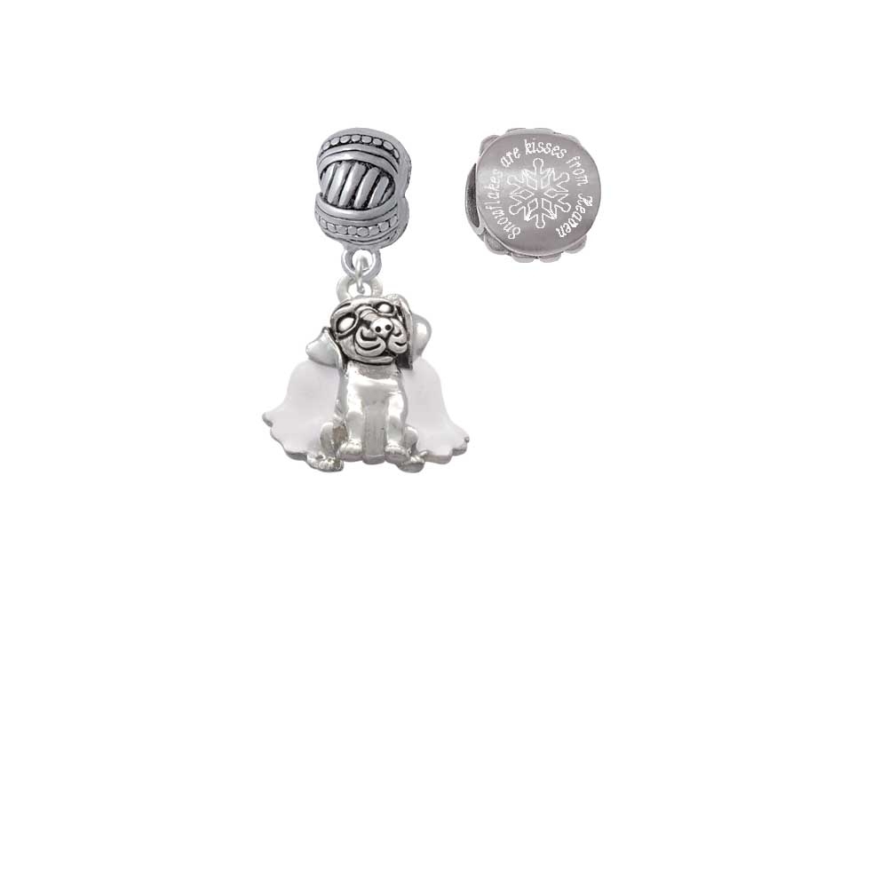 Silvertone Dog Angel Snowflakes are Kisses from Heaven Charm Beads (Set of 2). Charm size is approx. 0.81 x 0.77 x 0.3 inches (HxWxD) including loop. Large Rope with Cross Beads Charm Hanger is approx. 15x8x13mm (HxWxD) Hole size 5.5 mm. Our Charm Beads are compatible with most Charm Bead Bracelets. Also makes a great charms pendant. Engraved Stainless Steel Bead is approx. 13x13x9 mm (HxWxD) Hole size 5.5 mm. Wonderful winter jewelry beads. Please Note: Our products are lead safe, but are not intended for children 14 years and younger.