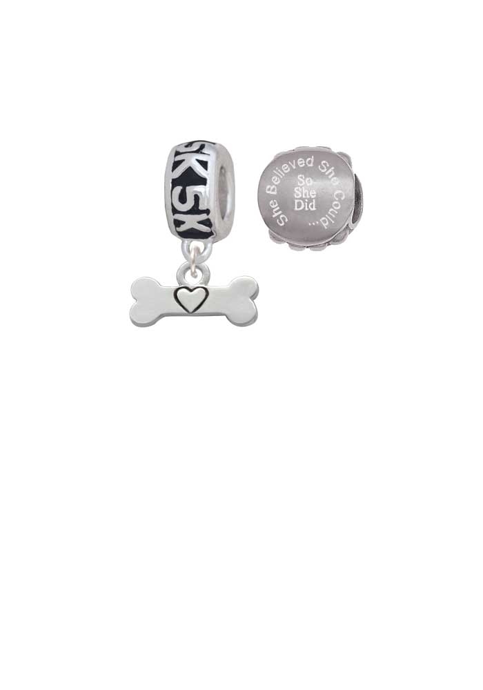 Dog Bone with Heart 5K Run She Believed She Could Charm Beads (Set of 2)