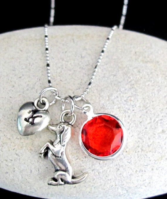 Cute dog charm with puffy heart 3D hand stamped initial and beautiful birthstone crystal next photo with pearl on silver plated chain. You can add gift box card or gift pouch card for giving gift I specialize in keepsake gift for moms, sisters, daughters, grandmas, dads, grandpas, teachers or anyone you cherish in your life. This necklace makes a thoughtful, personalized gift for Easter, confirmation, baptism, or Holiday Gift made in pet free and smoke free environment
