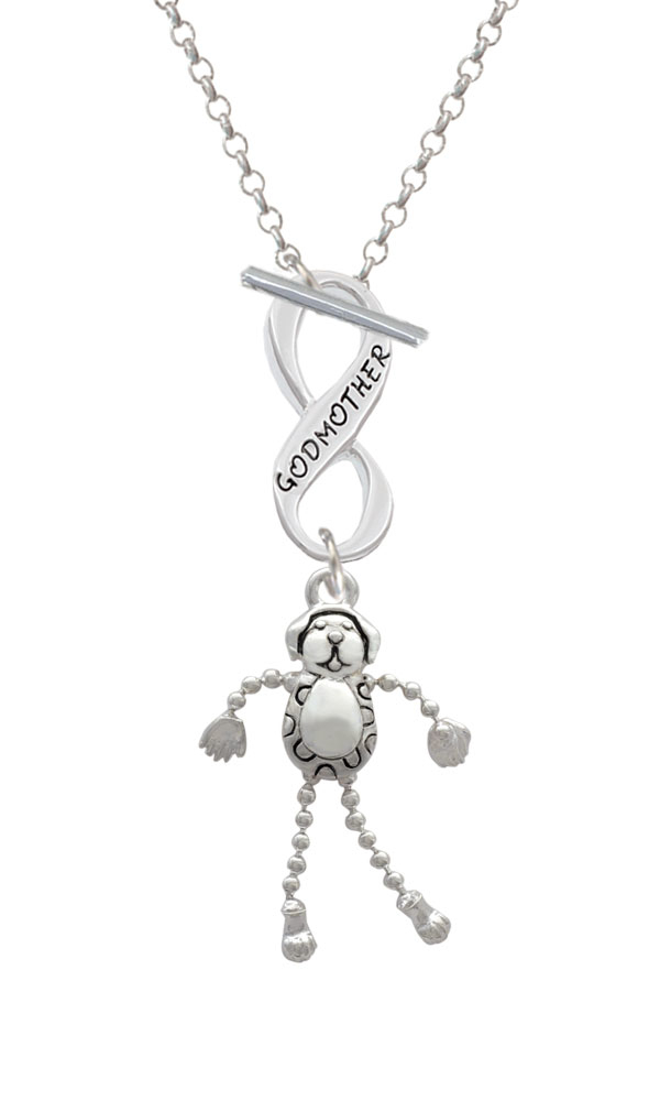Silver Tone Dog with 4 Dangle legs Godmother Infinity Toggle Necklace. Silver Tone Charms. Charm size is approx. 1.27 x 0.96 x 0.132 inches (HxWxD) including loop. 3mm Rolo Chain Necklace is 18 inches long. Infinity Toggle is approx. 0.90 x 0.40 x 0.10 inches (HxWxD). The infinity symbol represents the quality of being limitless or endless. Choose your favorite message to represent your love, faith, or commitment that lasts forever. Please Note: Our products are lead safe, but are not intended for children 14 years and younger.