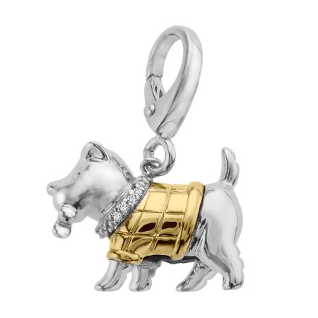 Duet Dog Charm with Diamonds in Sterling Silver & 14kt Gold