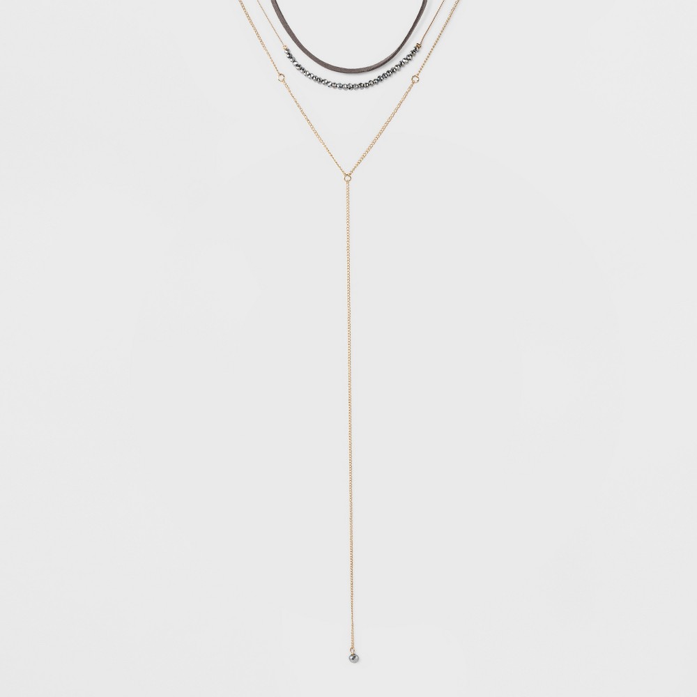 Add dramatic style to a simple outfit with the Faux Suede and Glitzy Bead Choker Necklace. With three different lengths, you get a faux-suede choker, short beaded necklace and gold Y-necklace, all in one. Pair with simple V-neck tees or dresses to add instant glam style. Gender: Female. Pattern: Solid.