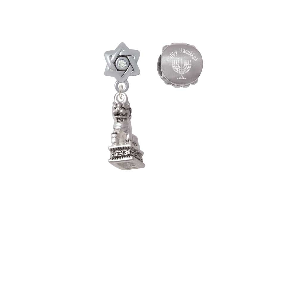 Silvertone 3-D Fu Dog Happy Hanukkah Charm Beads (Set of 2). Star of David Charm Bead Hanger is approx. 15x10x9 mm (HxWxD) Hole size 5.5 mm. Our Charm Beads are compatible with most Charm Bead Bracelets. Also makes a great charms pendant. Engraved Stainless Steel Bead is approx. 13x13x9 mm (HxWxD) Hole size 5.5 mm. Wonderful Jewish jewelry beads. Please Note: Our products are lead safe, but are not intended for children 14 years and younger.