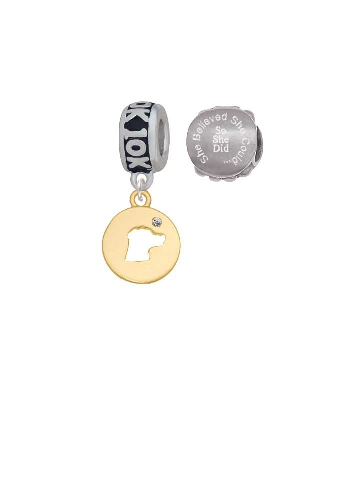 Goldtone Dog Head Silhouette 10K Run She Believed She Could Charm Beads (Set of 2). Goldtone Dog Head Silhouette is approx. 0.70 x 0.50 x 0.10 inches (HxWxD) including loop. 10K Charm Hanger Bead is approx. 12x6x12 mm (HxWxD) Hole size: 5.5 mm. Our Charm Beads are compatible with most Charm Bead Bracelets. Also makes a great charms pendant. She Believed She Could So She Did Engraved Stainless Steel Bead is approx. 13x13x9 mm (HxWxD) Hole size 5.5 mm. Wonderful running jewelry beads. Please Note: Our products are lead safe, but are not intended for children 14 years and younger.