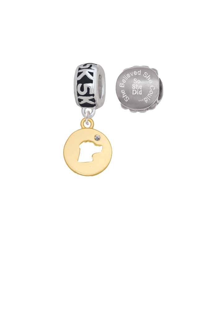 Goldtone Dog Head Silhouette 5K Run She Believed She Could Charm Beads (Set of 2). Goldtone Dog Head Silhouette is approx. 0.70 x 0.50 x 0.10 inches (HxWxD) including loop. 5K Charm Hanger Bead is approx. 12x6x12 mm (HxWxD) Hole size: 5.5 mm. Our Charm Beads are compatible with most Charm Bead Bracelets. Also makes a great charms pendant. She Believed She Could So She Did Engraved Stainless Steel Bead is approx. 13x13x9 mm (HxWxD) Hole size 5.5 mm. Wonderful running jewelry beads. Please Note: Our products are lead safe, but are not intended for children 14 years and younger.