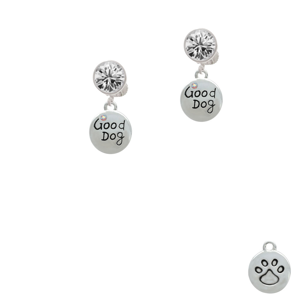 Silver Tone Good Dog with AB Crystal and Paw Print Crystal Clip On Earrings. Charm size is approx. 0.58 x 0.47 x 0.1 inches (HxWxD) including loop. Silver Tone 8mm Crystal Earrings are 10 x 10 mm (HxW). The hinged earwires have an adjustable screwback to customize your fit. Available crystal colors: Red, Green, Blue, Purple, Pink, Black, and Clear. Bow Earrings are 12 x 17 mm (HxW). Bows are available in Silvertone and Goldtone. These large sparkle earrings add bling to any outfit. Large clear crystal earrings go with everything! Please Note: Our products are lead safe, but are not intended for children 14 years and younger.