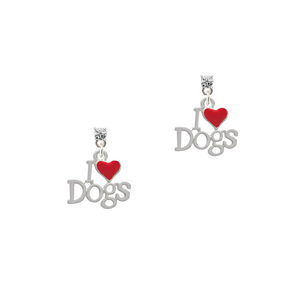 Silver Tone I love Dogs with Red Heart Crystal Post Earrings. Silver Tone, hand enameled charms. Charm size is approx. 0.62 x 0.68 x 0.09 inches (HxWxD) including loop. Earring Crystal is 3.3mm. Earrings have steel posts. Earring backs are Bullet ”Clutch” Style with Plastic Pad. Earring crystal colors available: Maroon (Siam-Color), Red (Light Siam-Color), Orange (Hyacinth), Yellow (Topaz-Color), Lime Green (Peridot-Color), Green (Emerald-Color), Teal (Blue Zircon-Color), Aqua (Aquamarine-Color), Blue (Sapphire-Color), Purple (Amethyst-Color), Light Purple (Light Amethyst-Color), Light Pink (Light Rose), Hot Pink (Rose), Black (Jet), Clear, and Brown (Smoked Topaz-Color). Please Note: Our products are lead safe, but are not intended for children 14 years and younger.