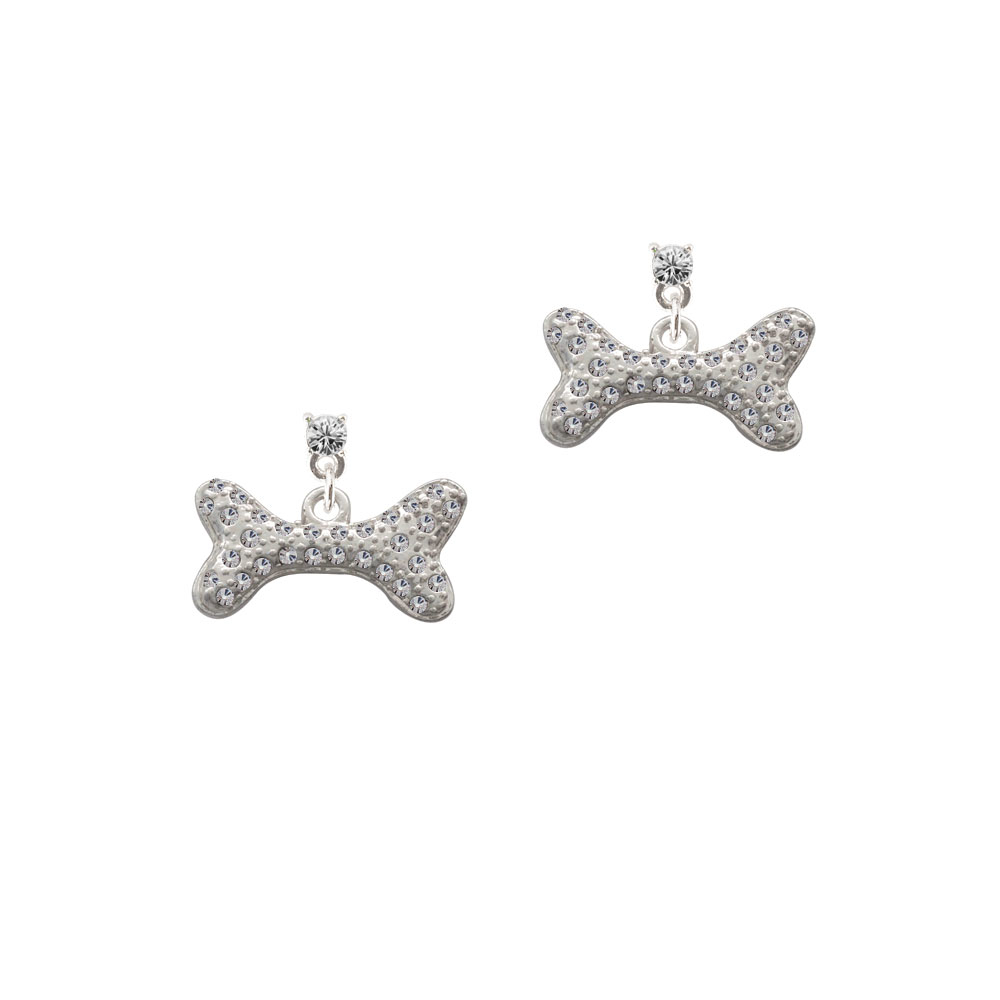 Silver Tone Large Clear Crystal Dog Bone Crystal Post Earrings. Silver Tone, hand enameled charms. Charm size is approx. 0.46 x 0.86 x 0.11 inches (HxWxD) including loop. Earring Crystal is 3.3mm. Earrings have steel posts. Earring backs are Bullet ”Clutch” Style with Plastic Pad. Earring crystal colors available: Maroon (Siam-Color), Red (Light Siam-Color), Orange (Hyacinth), Yellow (Topaz-Color), Lime Green (Peridot-Color), Green (Emerald-Color), Teal (Blue Zircon-Color), Aqua (Aquamarine-Color), Blue (Sapphire-Color), Purple (Amethyst-Color), Light Purple (Light Amethyst-Color), Light Pink (Light Rose), Hot Pink (Rose), Black (Jet), Clear, and Brown (Smoked Topaz-Color). Please Note: Our products are lead safe, but are not intended for children 14 years and younger.