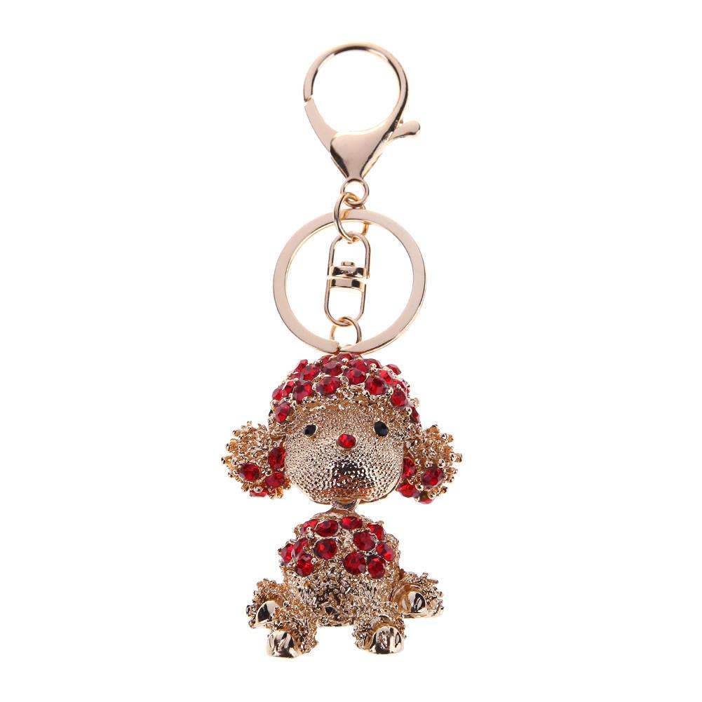 Lovely Dog Crystal Bag Pendant Keyrings Keychains for Car Key Holder(Red)