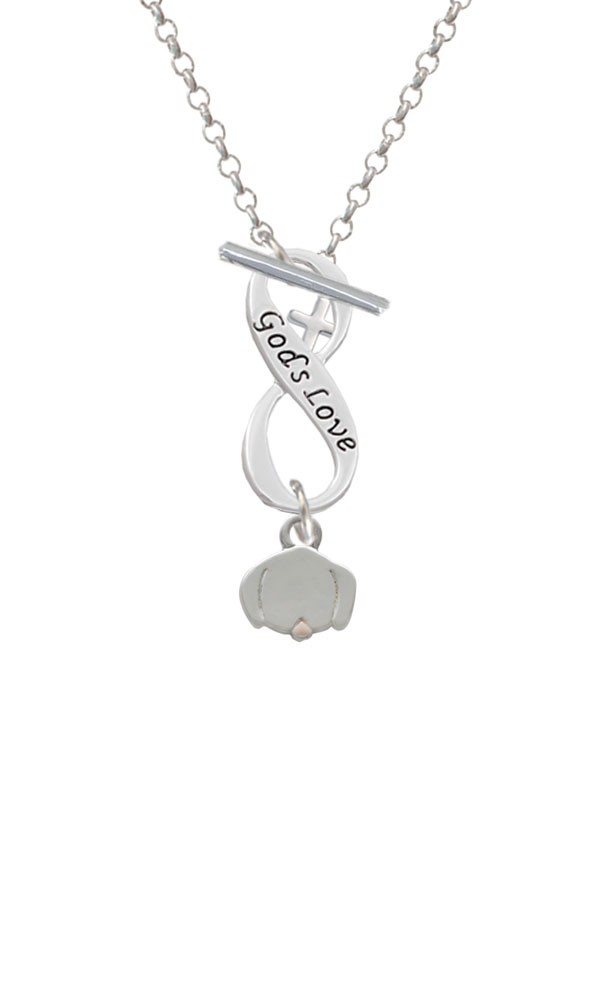 Silver Tone Mini Dog Face with Tongue God’s Love Infinity Toggle Necklace. Silver Tone, hand enameled charms. Charm size is approx. 0.42 x 0.39 x 0.05 inches (HxWxD) including loop. 3mm Rolo Chain Necklace is 18 inches long. Infinity Toggle is approx. 0.90 x 0.40 x 0.10 inches (HxWxD). The infinity symbol represents the quality of being limitless or endless. Choose your favorite message to represent your love, faith, or commitment that lasts forever. Please Note: Our products are lead safe, but are not intended for children 14 years and younger.