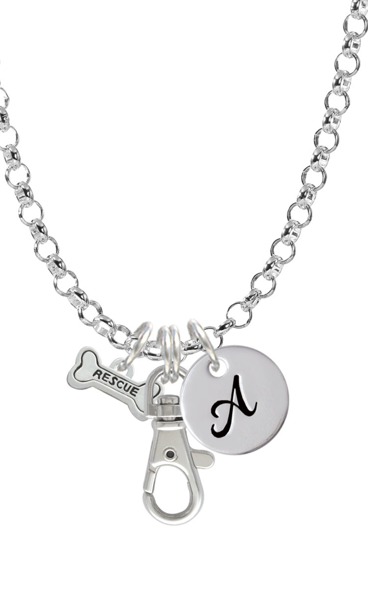 Silver Tone Mini “Rescue” Bone Two Sided Initial Badge Clip Necklace. Silver Tone, hand enameled charms. Charm size is approx. 0.34 x 0.6 x 0.06 inches (HxWxD) including loop. 5 mm Rolo Chain Necklace: 34 Inches. Large Swivel Clip is approx. 1.43 x 0.65 x 0.25 Inches (HxWxD). Dress up your ID with this beautiful and unique necklace. Please Note: Our products are lead safe, but are not intended for children 14 years and younger.