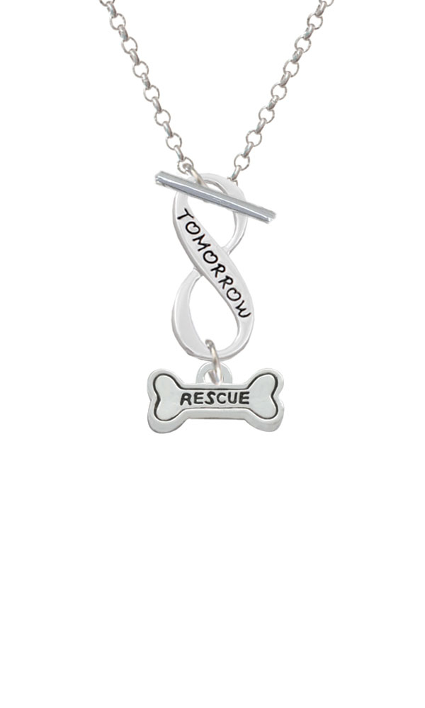 Silver Tone Mini “Rescue” Bone Two Sided Today Tomorrow Infinity Toggle Necklace. Silver Tone, hand enameled charms. Charm size is approx. 0.34 x 0.6 x 0.06 inches (HxWxD) including loop. 3mm Rolo Chain Necklace is 18 inches long. Infinity Toggle is approx. 0.90 x 0.40 x 0.10 inches (HxWxD). The infinity symbol represents the quality of being limitless or endless. Choose your favorite message to represent your love, faith, or commitment that lasts forever. Please Note: Our products are lead safe, but are not intended for children 14 years and younger.