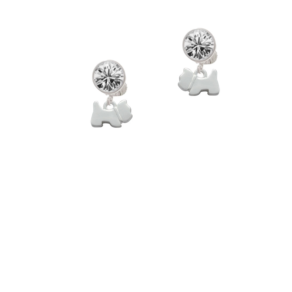 Silver Tone Mini Scottie Dog Crystal Clip On Earrings. Charm size is approx. 0.35 x 0.48 x 0.07 inches (HxWxD) including loop. Silver Tone 8mm Crystal Earrings are 10 x 10 mm (HxW). The hinged earwires have an adjustable screwback to customize your fit. Available crystal colors: Red, Green, Blue, Purple, Pink, Black, and Clear. Bow Earrings are 12 x 17 mm (HxW). Bows are available in Silvertone and Goldtone. These large sparkle earrings add bling to any outfit. Large clear crystal earrings go with everything! Please Note: Our products are lead safe, but are not intended for children 14 years and younger.