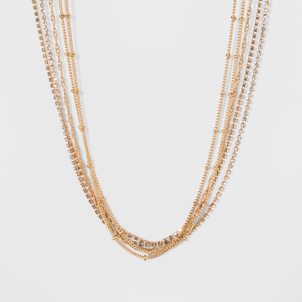 Amp up your style with this multi row choker! The mixture of different chain types makes this necklace unique, and adds texture to any outfit. You can’t go wrong with this versatile and fashion-toward necklace! Color: Gold. Gender: Female. Pattern: Solid.