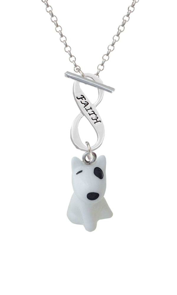 Resin White Bull Terrier Dog Faith Infinity Toggle Necklace