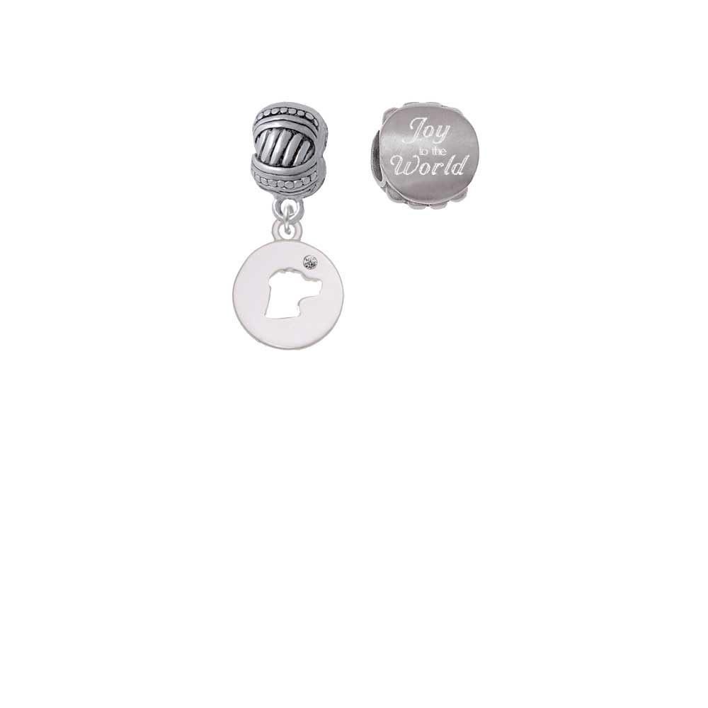 Dog Head Silhouette Joy to the World Charm Beads (Set of 2). Silvertone Dog Head Silhouette is approx. 0.70 x 0.50 x 0.10 inches (HxWxD) including loop. Large Rope with Cross Beads Charm Hanger is approx. 15x8x13mm (HxWxD) Hole size 5.5 mm. Our Charm Beads are compatible with most Charm Bead Bracelets. Also makes a great charms pendant. Engraved Stainless Steel Bead is approx. 13x13x9 mm (HxWxD) Hole size 5.5 mm. Wonderful Christmas jewelry beads. Please Note: Our products are lead safe, but are not intended for children 14 years and younger.