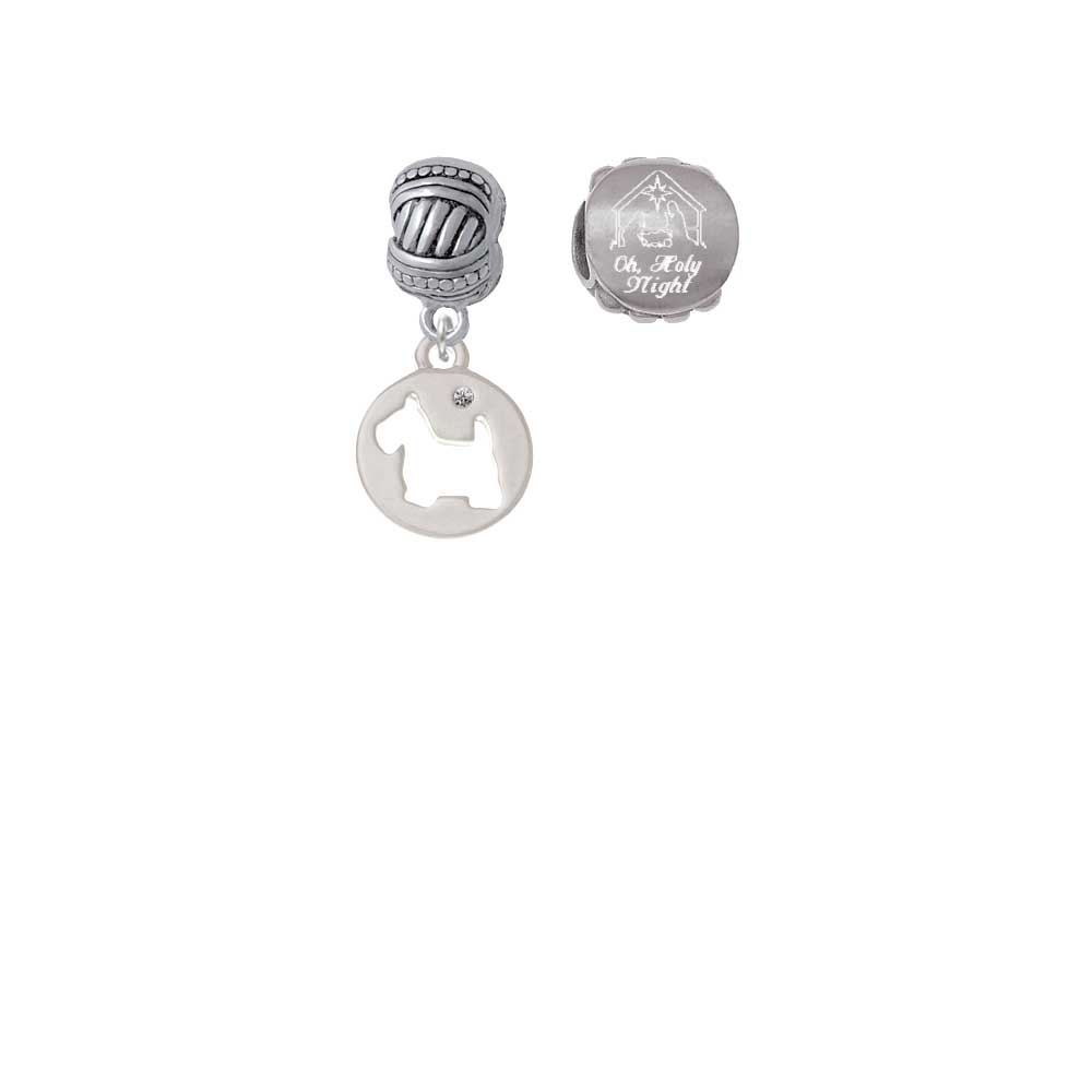 Silvertone Scottie Dog Silhouette Come Let us Adore Him Charm Beads (Set of 2). Silvertone Scottie Dog Silhouette is approximately 0.64 x 0.53 x 0.09 inches (HxWxD) including loop. Smooth disc has a Scottish Terrier Cutout with a clear crystal on the front. Large Rope with Cross Beads Charm Hanger is approx. 15x8x13mm (HxWxD) Hole size 5.5 mm. Our Charm Beads are compatible with most Charm Bead Bracelets. Also makes a great charms pendant. Engraved Stainless Steel Bead is approx. 13x13x9 mm (HxWxD) Hole size 5.5 mm. Wonderful Christmas jewelry beads. Please Note: Our products are lead safe, but are not intended for children 14 years and younger.