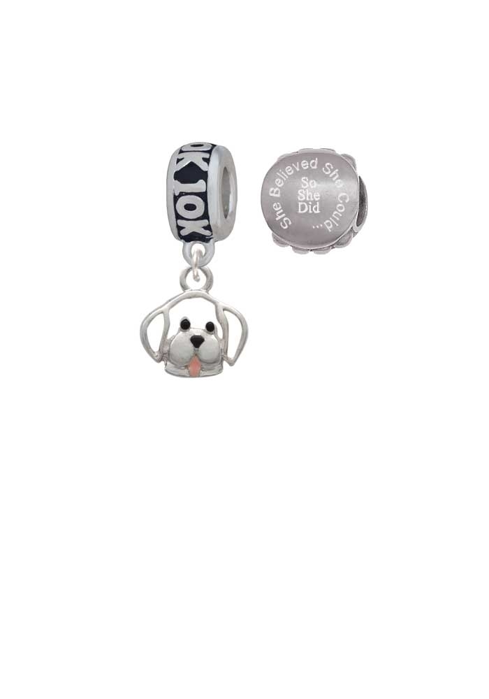 Silvertone Small Outline Dog Face 10K Run She Believed She Could Charm Beads (Set of 2). Charm size is approx. 0.53 x 0.5 x 0.11 inches (HxWxD) including loop. 10K Charm Hanger Bead is approx. 12x6x12 mm (HxWxD) Hole size: 5.5 mm. Our Charm Beads are compatible with most Charm Bead Bracelets. Also makes a great charms pendant. She Believed She Could So She Did Engraved Stainless Steel Bead is approx. 13x13x9 mm (HxWxD) Hole size 5.5 mm. Wonderful running jewelry beads. Please Note: Our products are lead safe, but are not intended for children 14 years and younger.