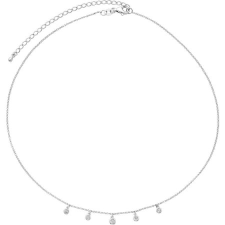 STERLING SILVER DIA ACCENT 0.014 CTTW MIRACLE PLATE DANGLE CHOKER 14″ NECKLACE WITH 3″ EXTENDER