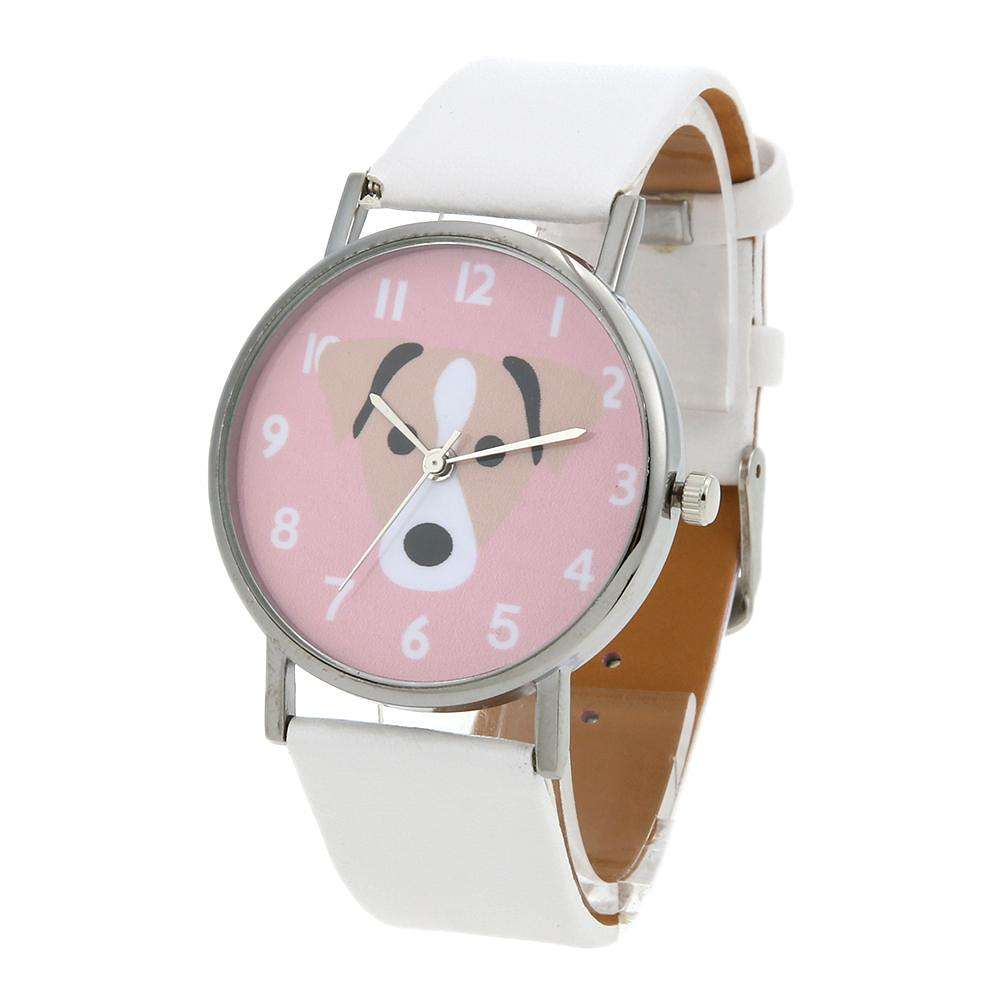Unisex Dogs Pattern PU Leather Bracelet Casual Quartz Watch(White Pink)