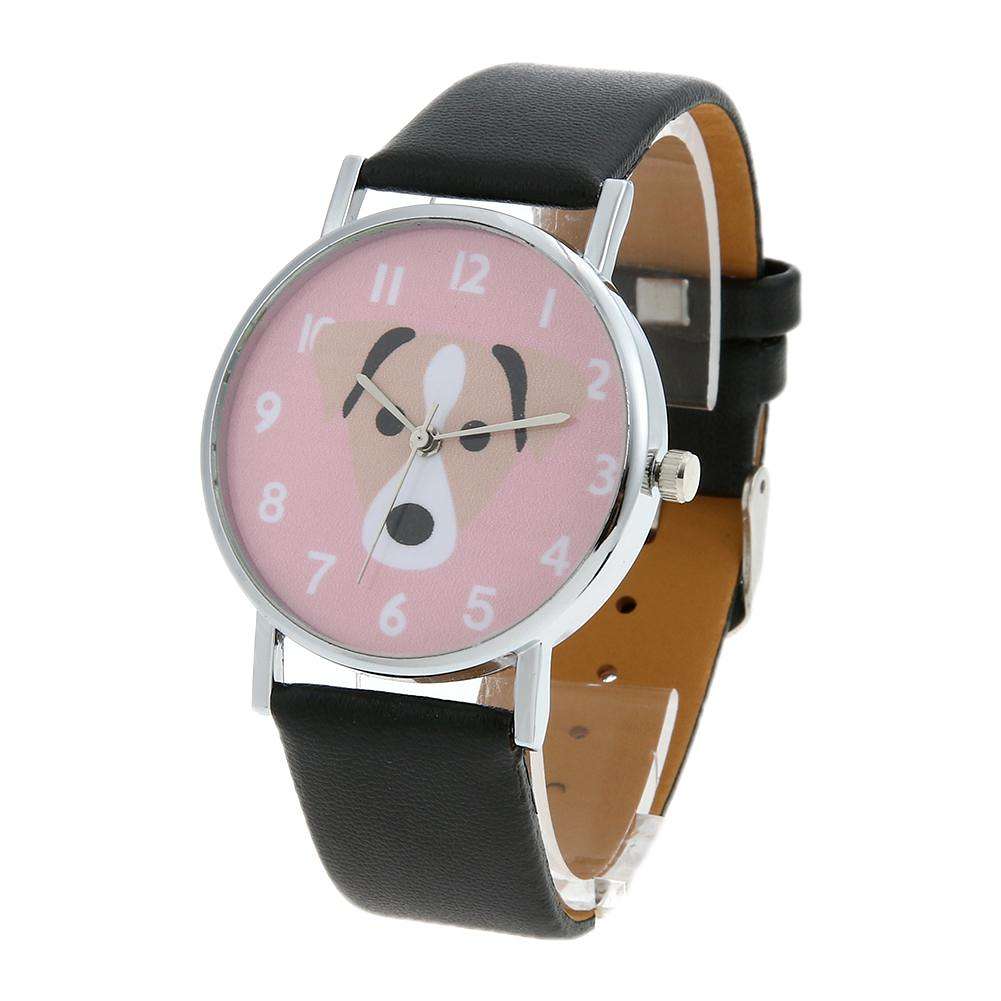 Unisex Dogs Pattern PU Leather Bracelet Casual Quartz Watch(Black Pink)