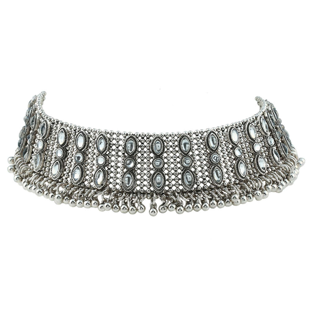 Vintage Bohemian Rhinestone Chain Choker Statement Bib Necklace (silver)